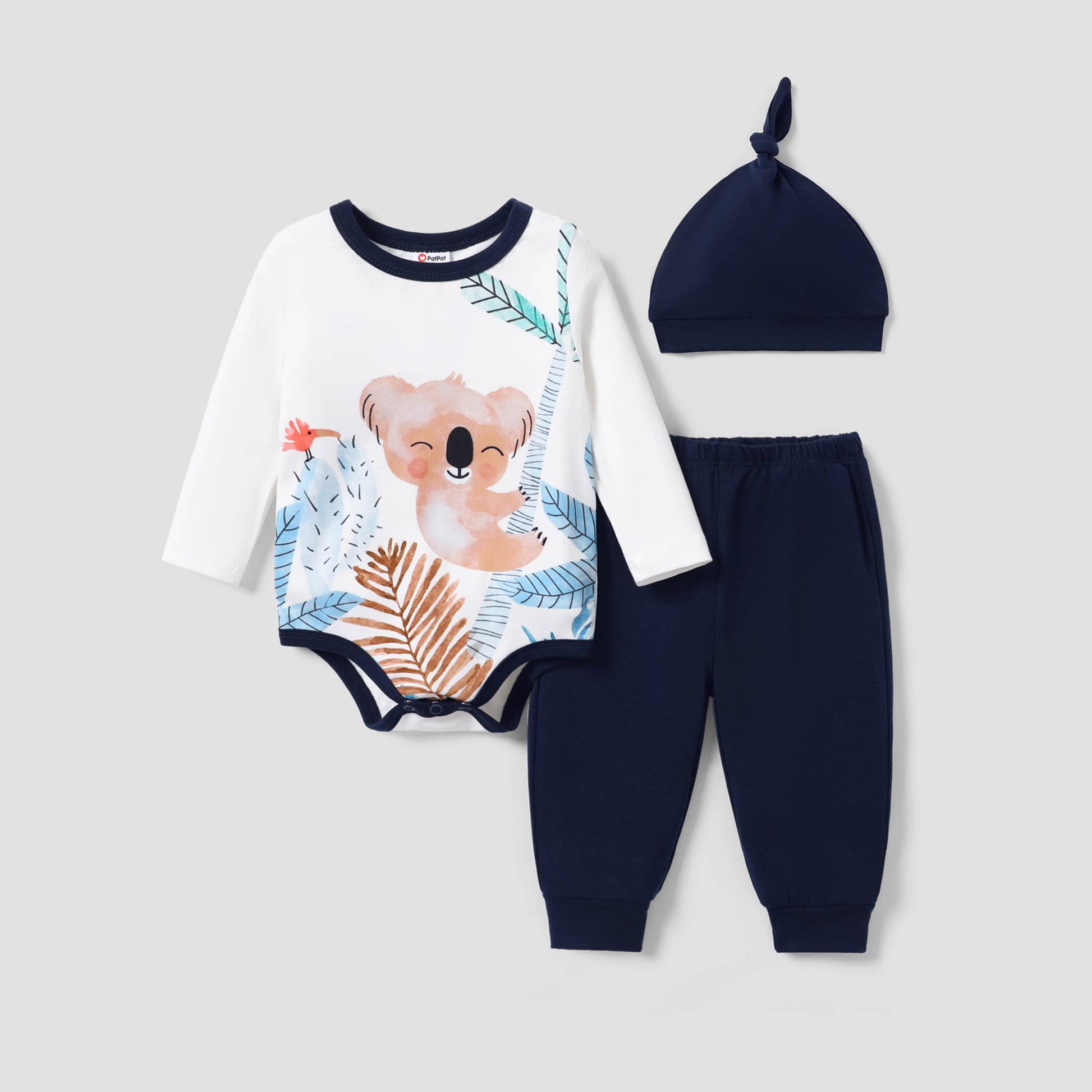 +3pcs Baby Boy Koala Animal Pattern Long Sleeve Set: Blueblack / 12-18 Months