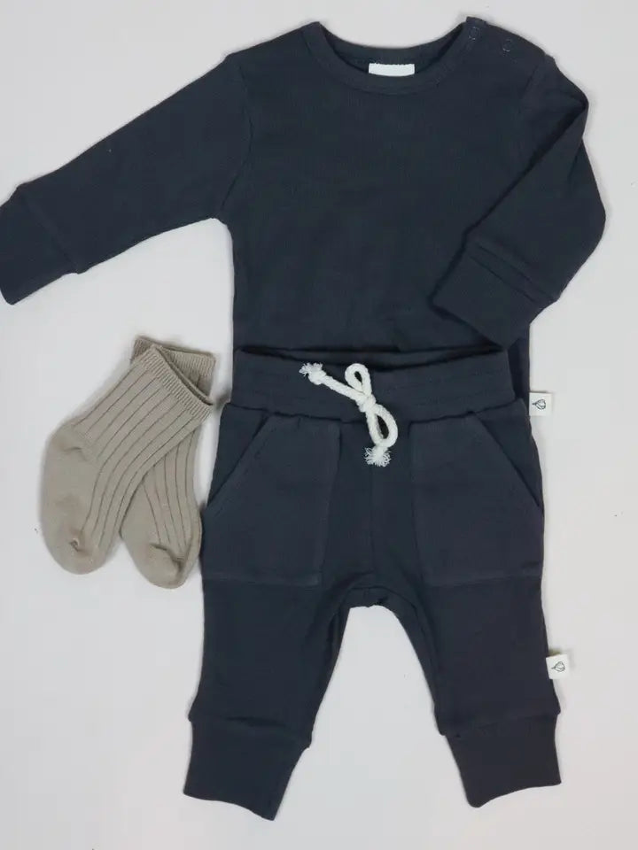 The Deep Charcoal Ribbed Organic Cotton Outfit