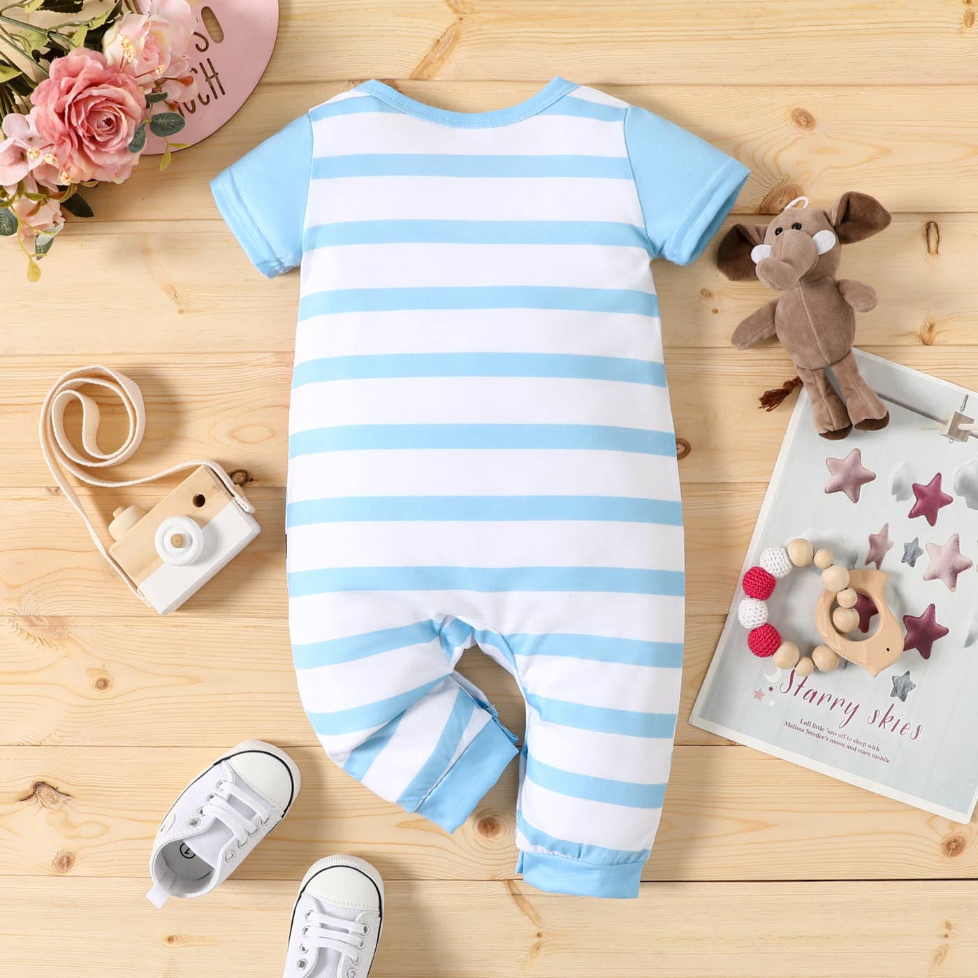 +Baby Boy/Girl Elephant Striped/Dots Naia™ Jumpsuit: Pink / 9-12 Months