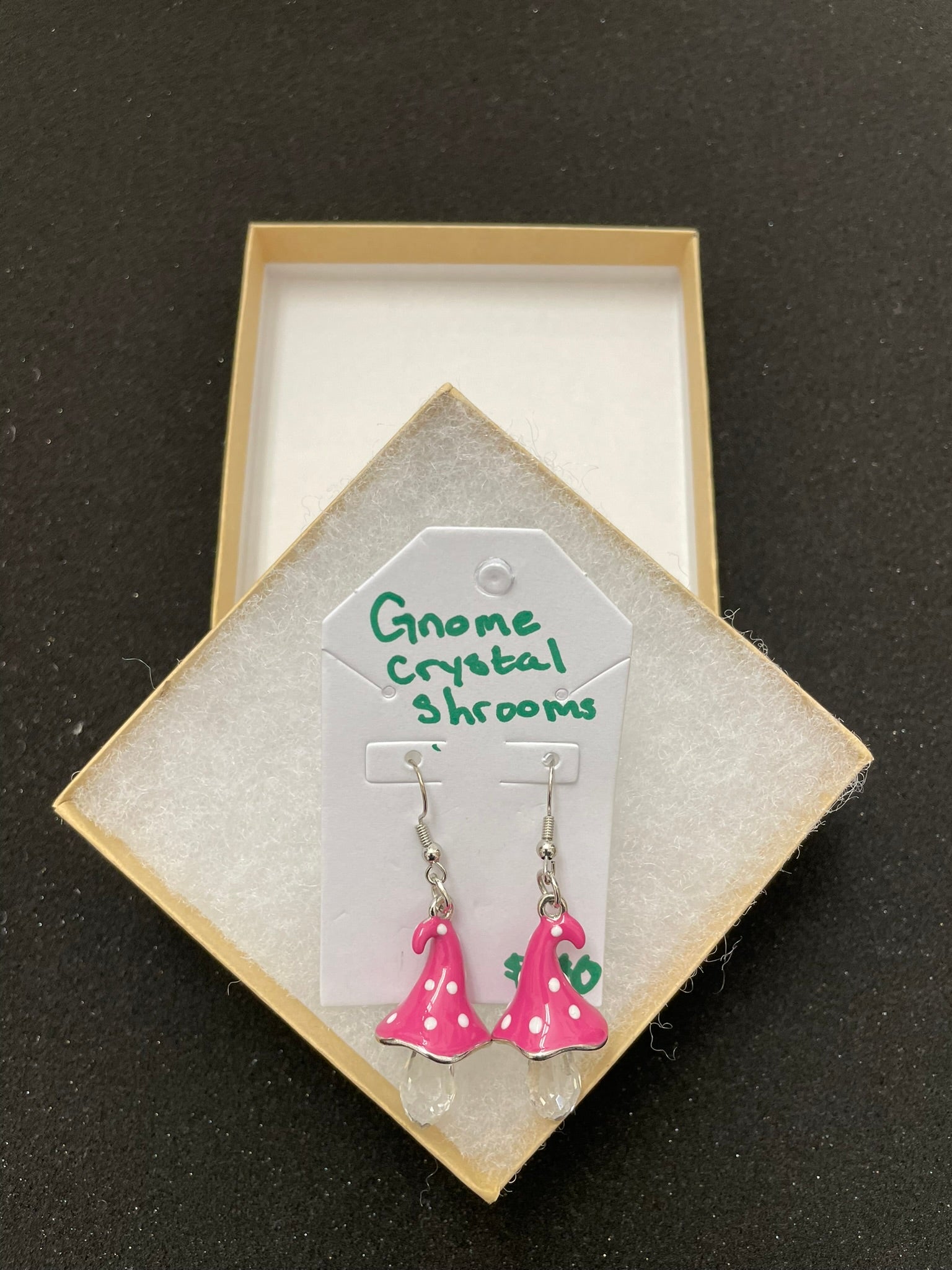 Goose's Handmade Gnome Crystal Shroom Earrings