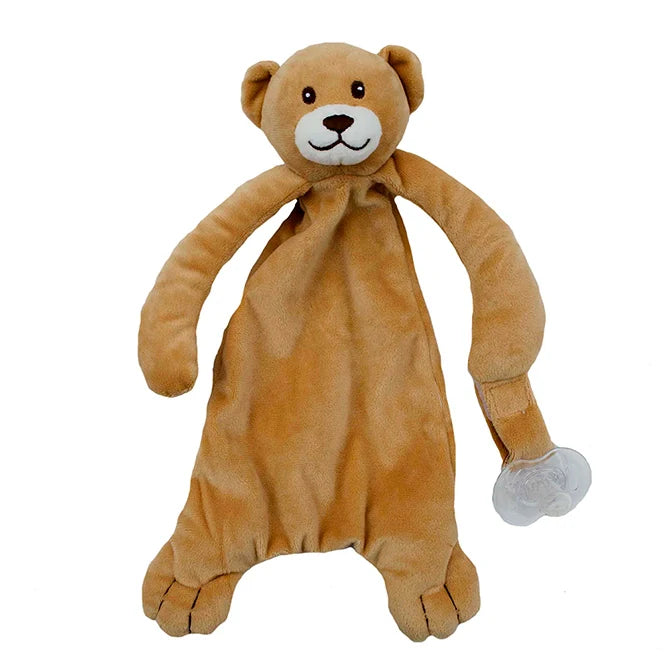 Pacifier Nummies are perfect as carry along friends! Their charming faces will help calm little ones while the arms keep track of their pacifiers! Pacifier not included. 11 Inches.